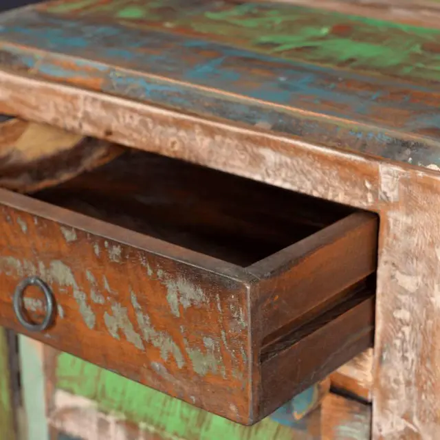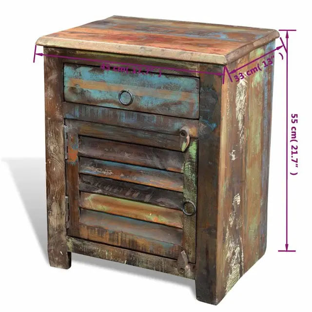 vidaXL Odstavna mizica z 1 predalom in 1 vrati predelan les