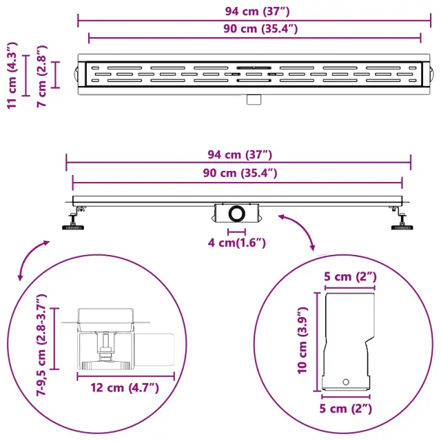 Ta moderen tuš odtok združuje slog in funkcionalnost. Z elegantno pravokotno obliko in konstrukcijo iz nerjavečega jekla je praktičen in privlačen dodatek, ki se brez težav prilega različnim modernim interierjem in ustvarja sproščujoče vzdušje v vaši kopalnici.