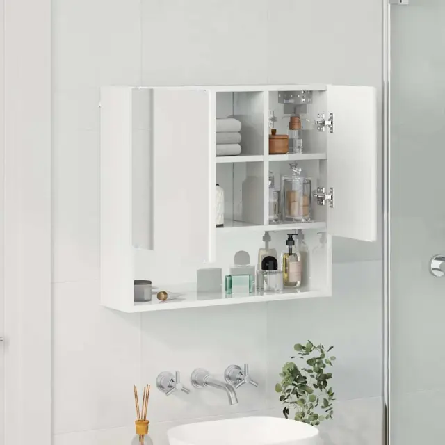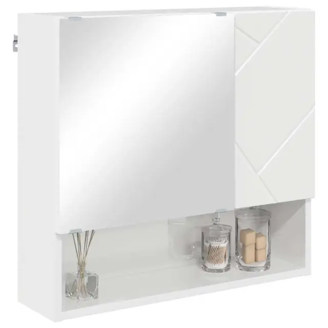 vidaXL Ogledalna omara s polico Bela z visokim sijajem 59 x 17 x 55 cm