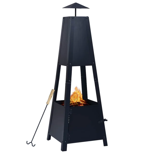 Ognjišče iz jekla s prašnim premazom izvrstno vpija in oddaja toploto. Njegove noge iz trpežnega jekla zagotavljajo stabilnost in trdnost v različnih zunanjih prostorih. Ob tem ognjišču bo lahko vsak užival v toploti in udobju ob hladnih večerih.