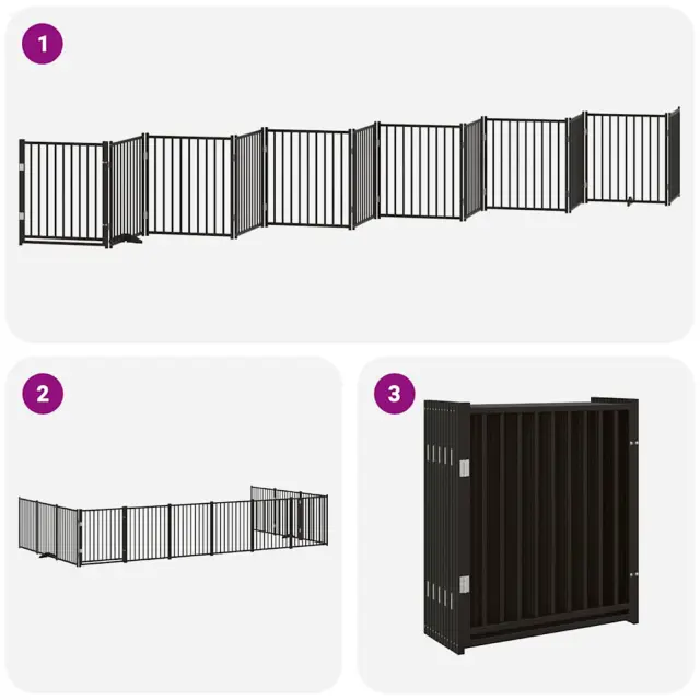 vidaXL Ograda za pse z vrati zložljiva 12 panelov črna 960 cm les