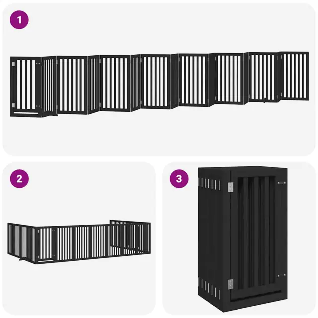 vidaXL Ograda za pse z vrati zložljiva 15 panelov črna 750 cm les