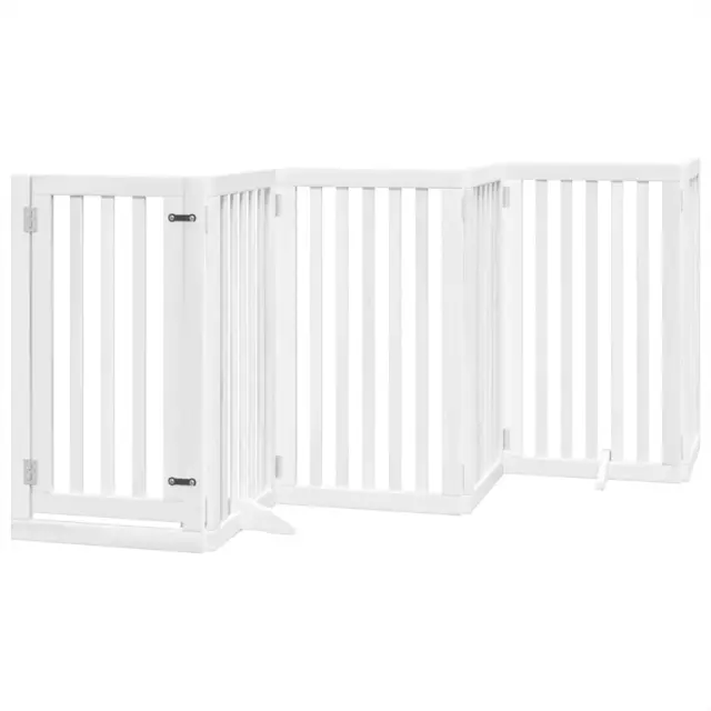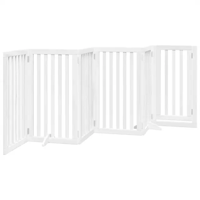 vidaXL Ograda za pse z vrati zložljiva 6 panelov bela 300cm topolovina