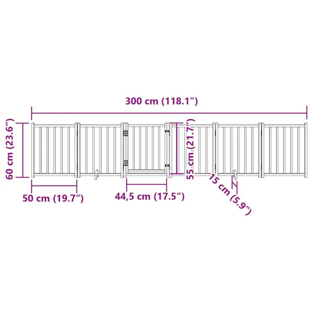 vidaXL Ograda za pse z vrati zložljiva 6 panelov črna 300cm jelka
