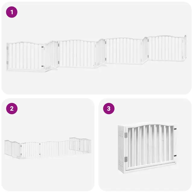 vidaXL Ograda za pse z vrati zložljiva 8 panelov bela 640 cm les