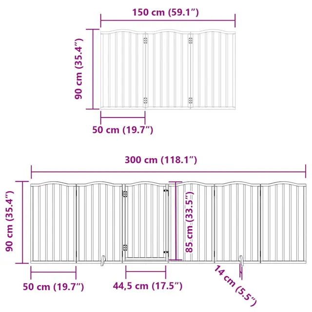 vidaXL Ograda za pse z vrati zložljiva 9 panelov rjava 450 cm les