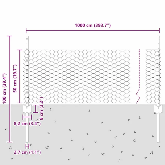 vidaXL Ograja in Stolp Siva 0,5 x 10 m Jeklo