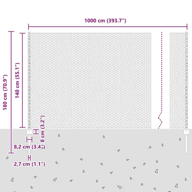 • Splošne dimenzije: 1000,0 x 2,7 x 140 cm (D x Š x V)