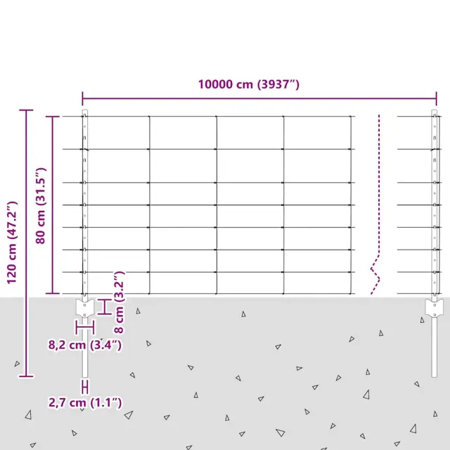 • Splošne dimenzije: 10000,0 x 2,7 x 80 cm (D x Š x V)