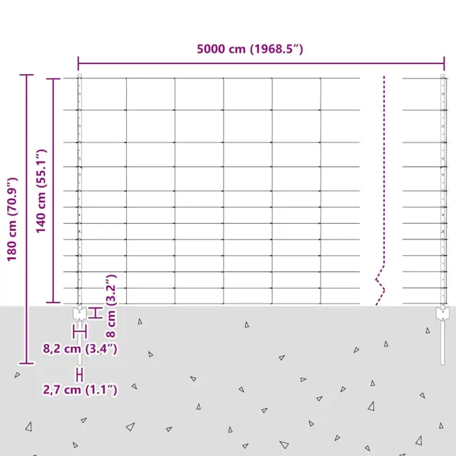 • Splošne dimenzije: 5000,0 x 2,7 x 140 cm (D x Š x V)