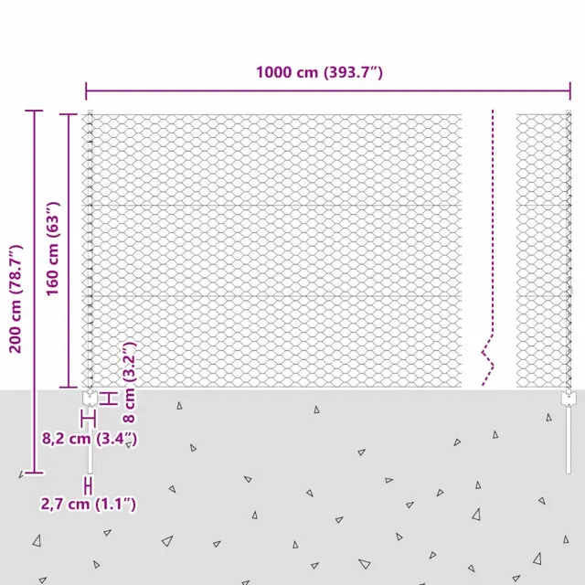 vidaXL Ograja in Stolp srebrna 1,6 x 10 m Jeklo