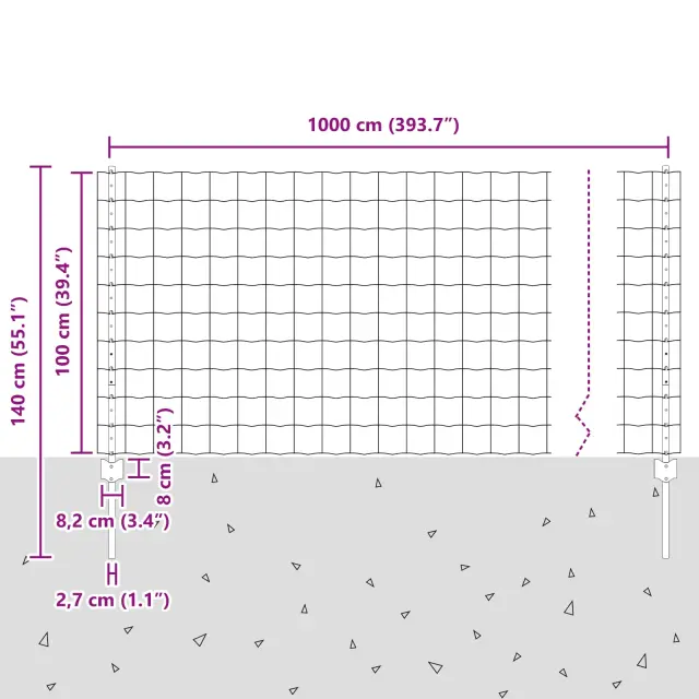 • Splošne dimenzije: 1000 x 2,7 x 100 cm (D x Š x V)