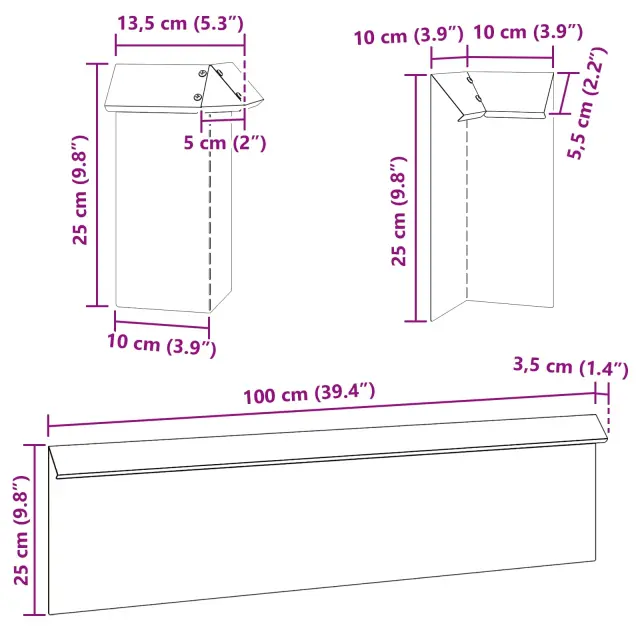 • Splošne dimenzije: 100 x 3,5 x 25 cm (D x Š x V)