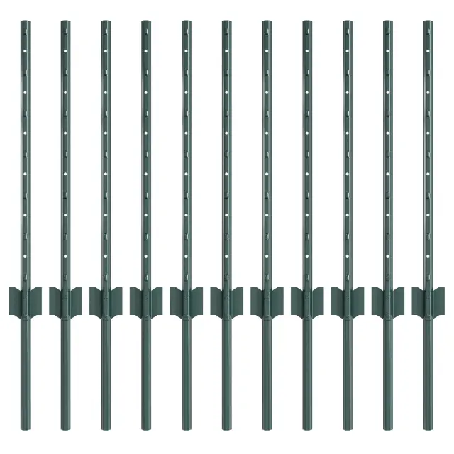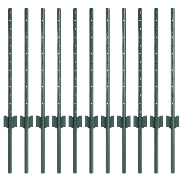 vidaXL Ograjni stebri 11 pcs Zelena 60 cm Jeklo