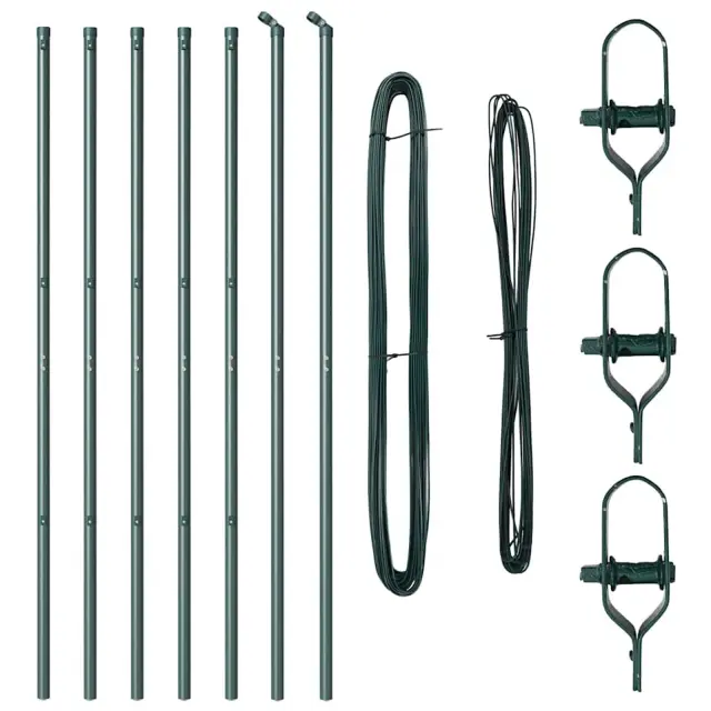 vidaXL Ograjni stebri 7 pcs Zelena Ø32mm 200 cm Pocinkano jeklo