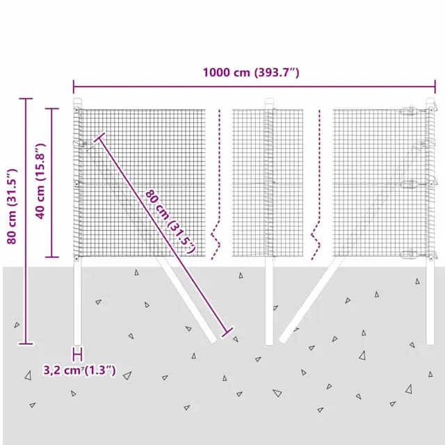 vidaXL Ogrodje s stebri Siva 0.4 x 10 m Jeklo
