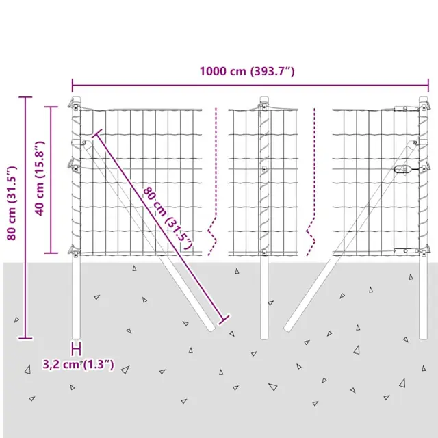 vidaXL Ogrodje s stebri Siva 0.4 x 10 m Jeklo