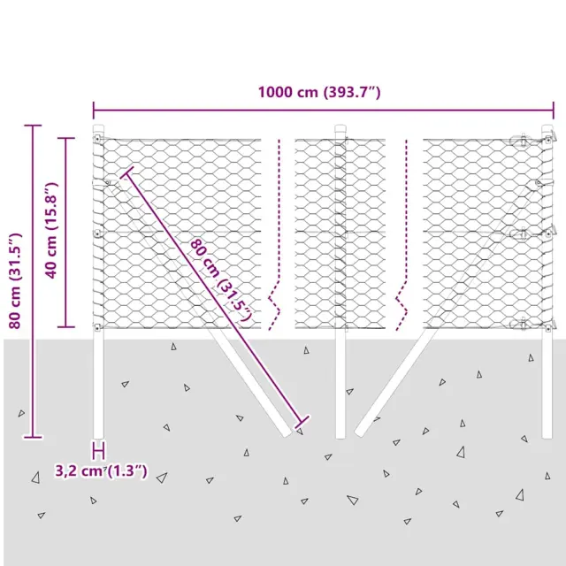 vidaXL Ogrodje s stebri Siva 0.4 x 10 m Jeklo s PVC premazom