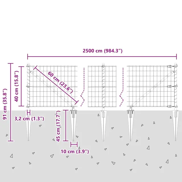 vidaXL Ogrodje s stebri Siva 0.4 x 25 m Jeklo