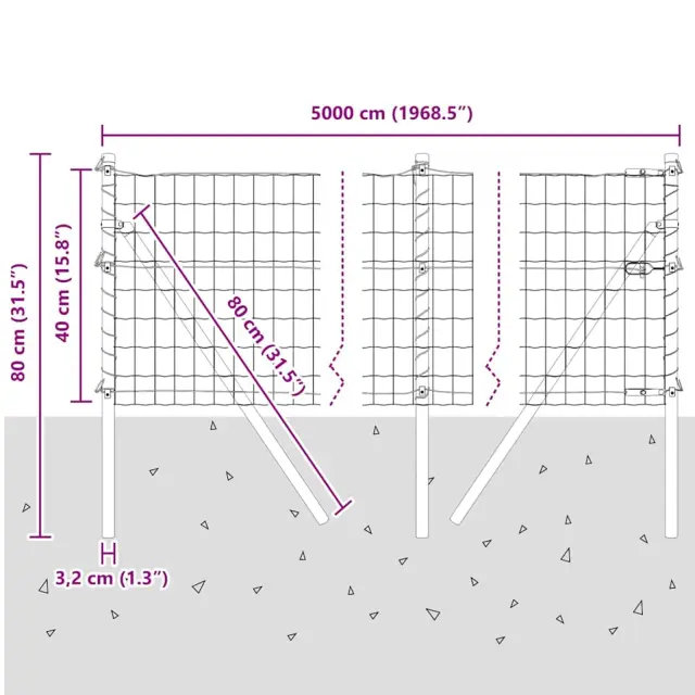 vidaXL Ogrodje s stebri Siva 0.4 x 50 m Jeklo