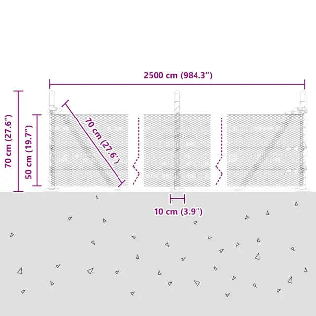 vidaXL Ogrodje s stebri Siva 0.5 x 25 m Jeklo s PVC premazom