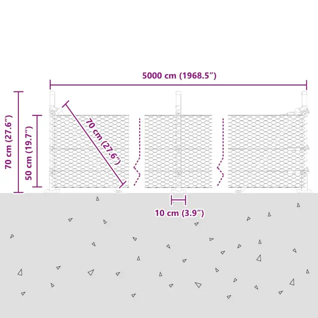 vidaXL Ogrodje s stebri Siva 0.5 x 50 m Jeklo s PVC premazom