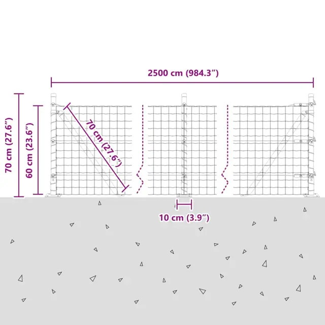 vidaXL Ogrodje s stebri Siva 0.6 x 25 m Jeklo