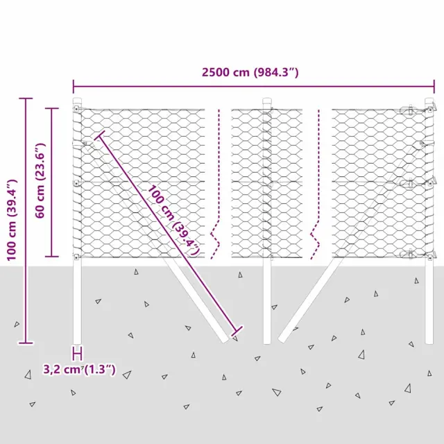 vidaXL Ogrodje s stebri Siva 0.6 x 25 m Jeklo s PVC premazom