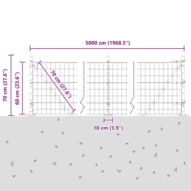 vidaXL Ogrodje s stebri Siva 0.6 x 50 m Jeklo