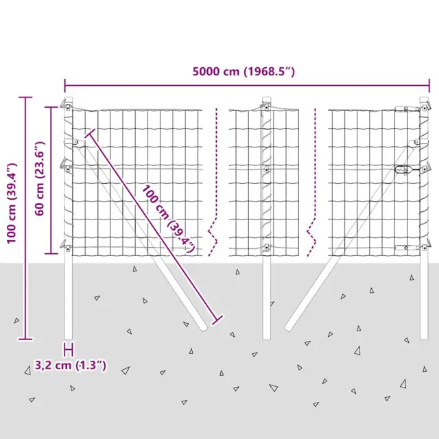 vidaXL Ogrodje s stebri Siva 0.6 x 50 m Jeklo