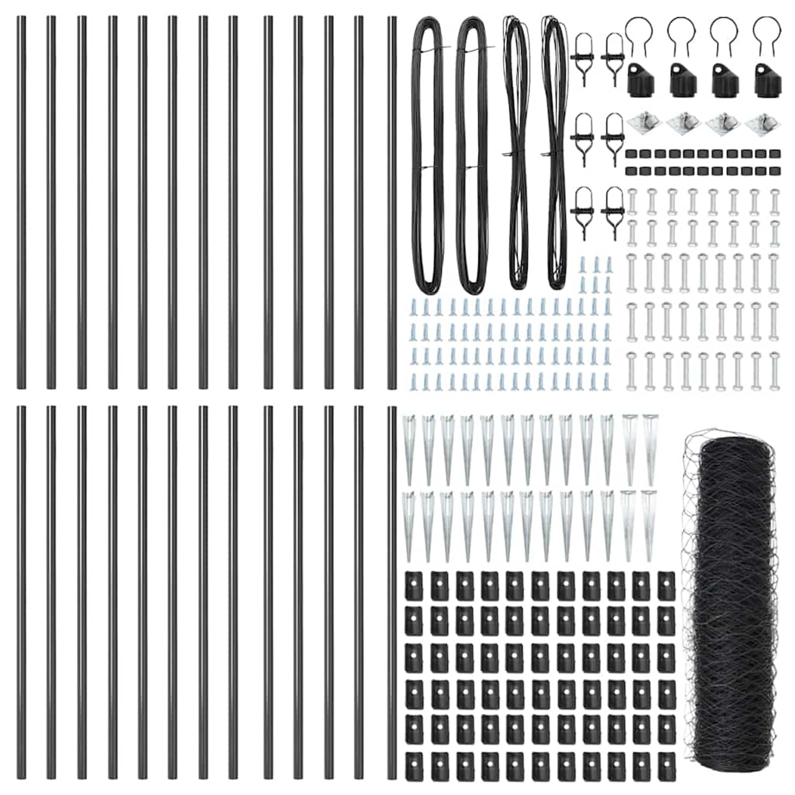vidaXL Ogrodje s stebri Siva 0.6 x 50 m Jeklo s PVC premazom