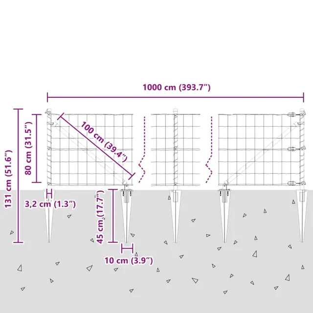 vidaXL Ogrodje s stebri Siva 0.8 x 10 m Jeklo