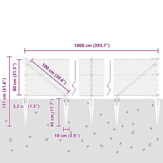 vidaXL Ogrodje s stebri Siva 0.8 x 10 m Jeklo s PVC premazom