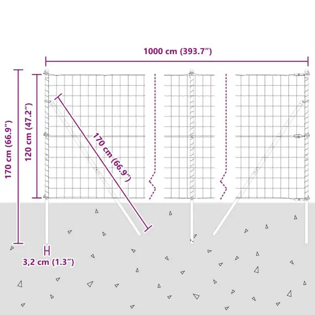 vidaXL Ogrodje s stebri Siva 1.2 x 10 m Jeklo