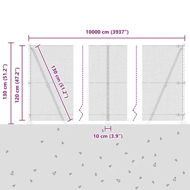 • Splošne dimenzije: 10000 x 3.2 x 120 cm (D x Š x V)