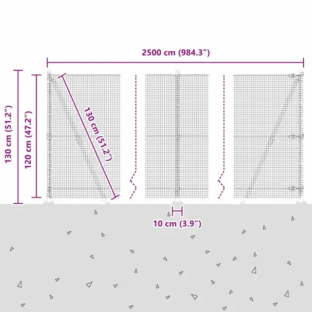 vidaXL Ogrodje s stebri Siva 1.2 x 25 m Jeklo