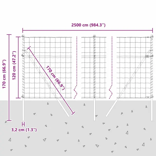 vidaXL Ogrodje s stebri Siva 1.2 x 25 m Jeklo