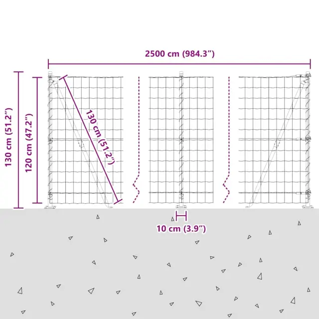 vidaXL Ogrodje s stebri Siva 1.2 x 25 m Jeklo
