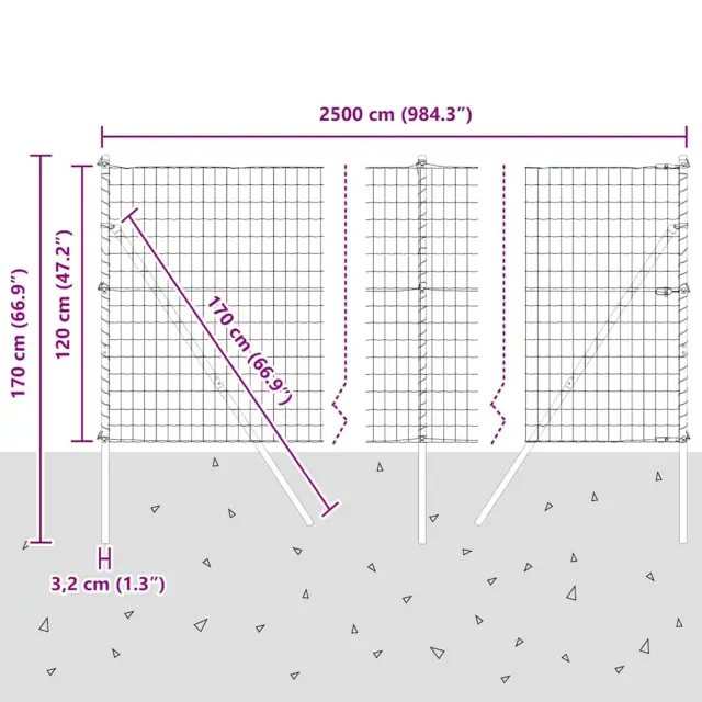 vidaXL Ogrodje s stebri Siva 1.2 x 25 m Jeklo