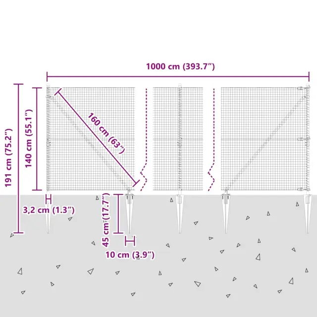 vidaXL Ogrodje s stebri Siva 1.4 x 10 m Jeklo