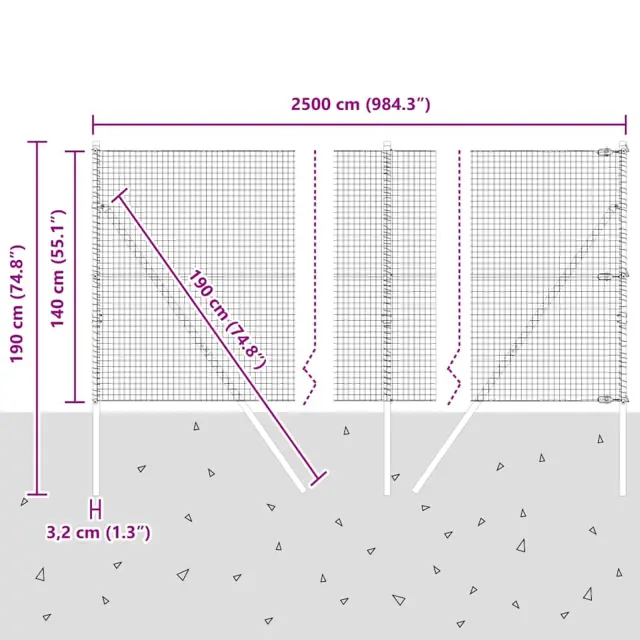 vidaXL Ogrodje s stebri Siva 1.4 x 25 m Jeklo