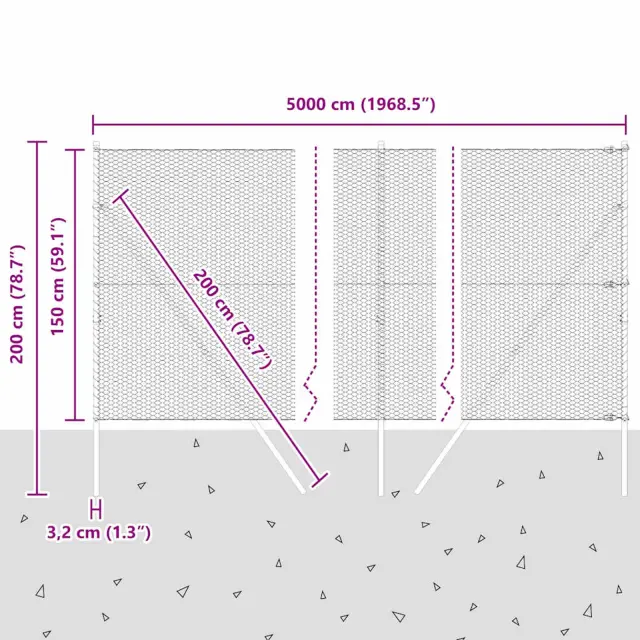 vidaXL Ogrodje s stebri Siva 1.5 x 50 m Jeklo s PVC premazom