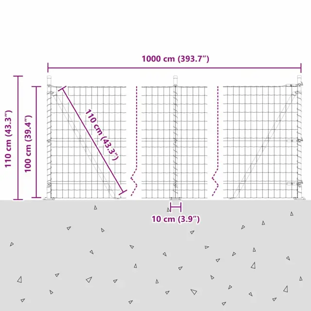 vidaXL Ogrodje s stebri Siva 1 x 10 m Jeklo
