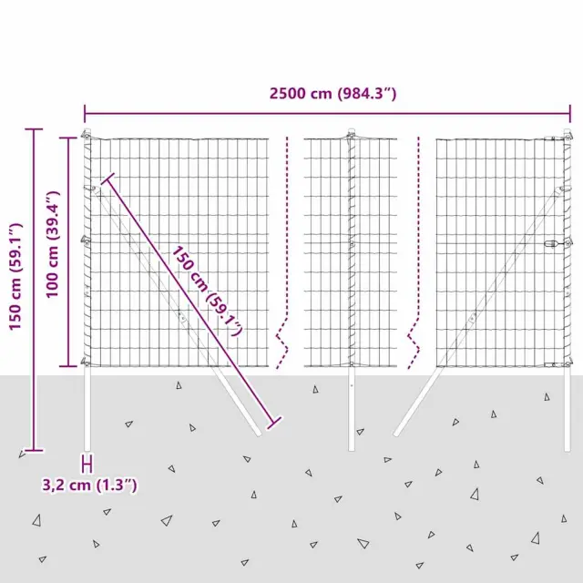 vidaXL Ogrodje s stebri Siva 1 x 25 m Jeklo