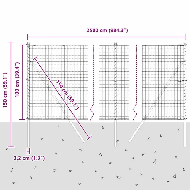 vidaXL Ogrodje s stebri Siva 1 x 25 m Jeklo