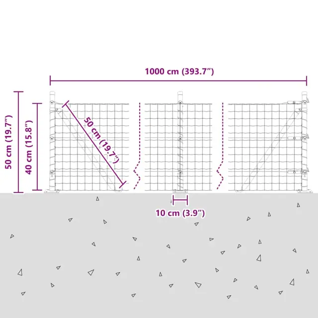 vidaXL Ogrodje s stebri srebrna 0.4 x 10 m Jeklo