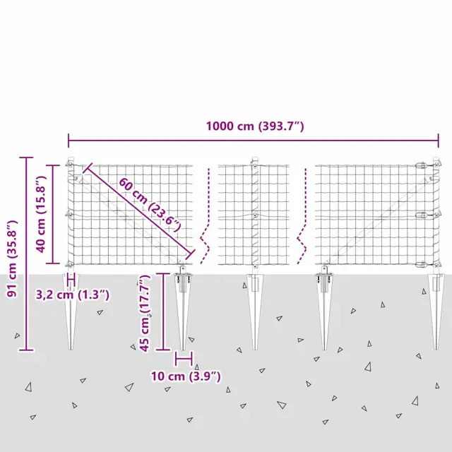 vidaXL Ogrodje s stebri srebrna 0.4 x 10 m Jeklo