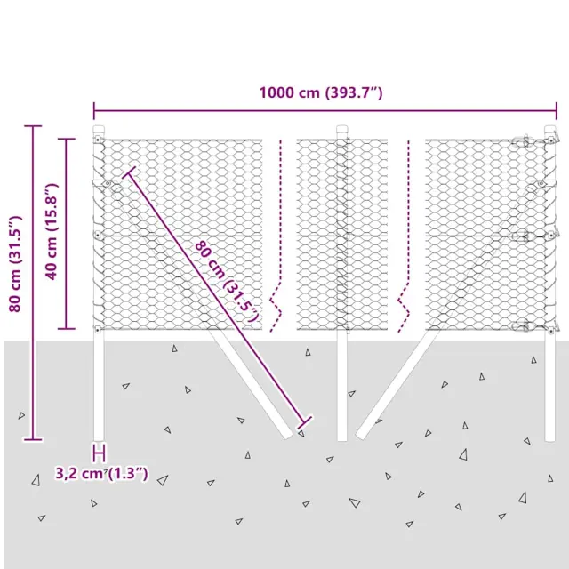 vidaXL Ogrodje s stebri srebrna 0.4 x 10 m Jeklo s PVC premazom