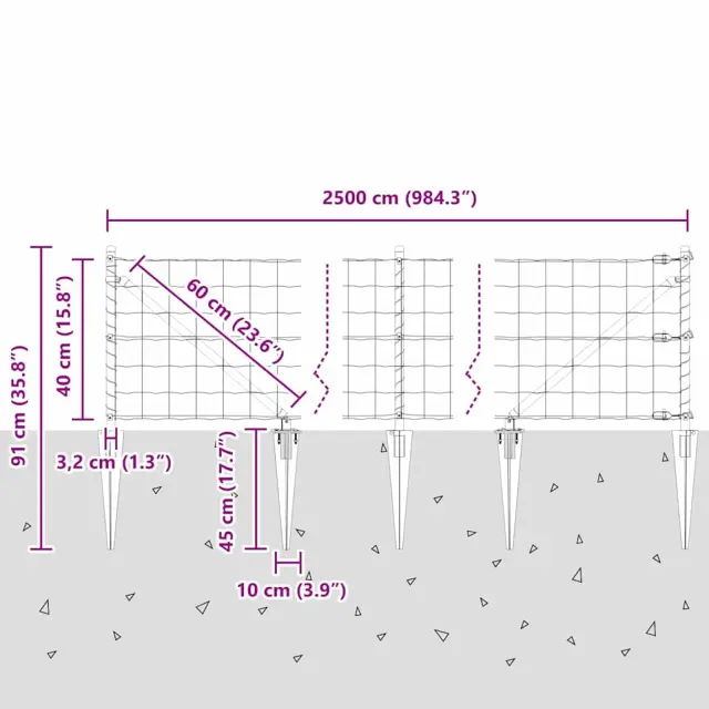 vidaXL Ogrodje s stebri srebrna 0.4 x 25 m Jeklo