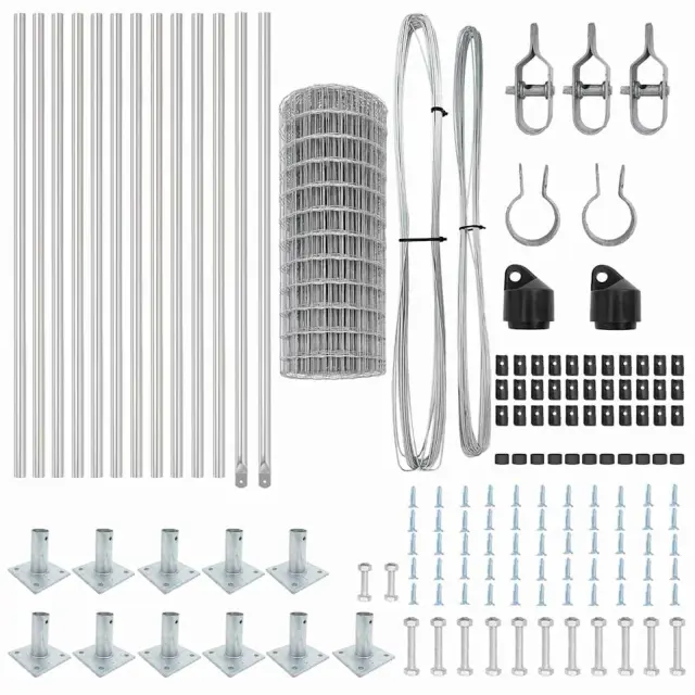 vidaXL Ogrodje s stebri srebrna 0.4 x 50 m Jeklo